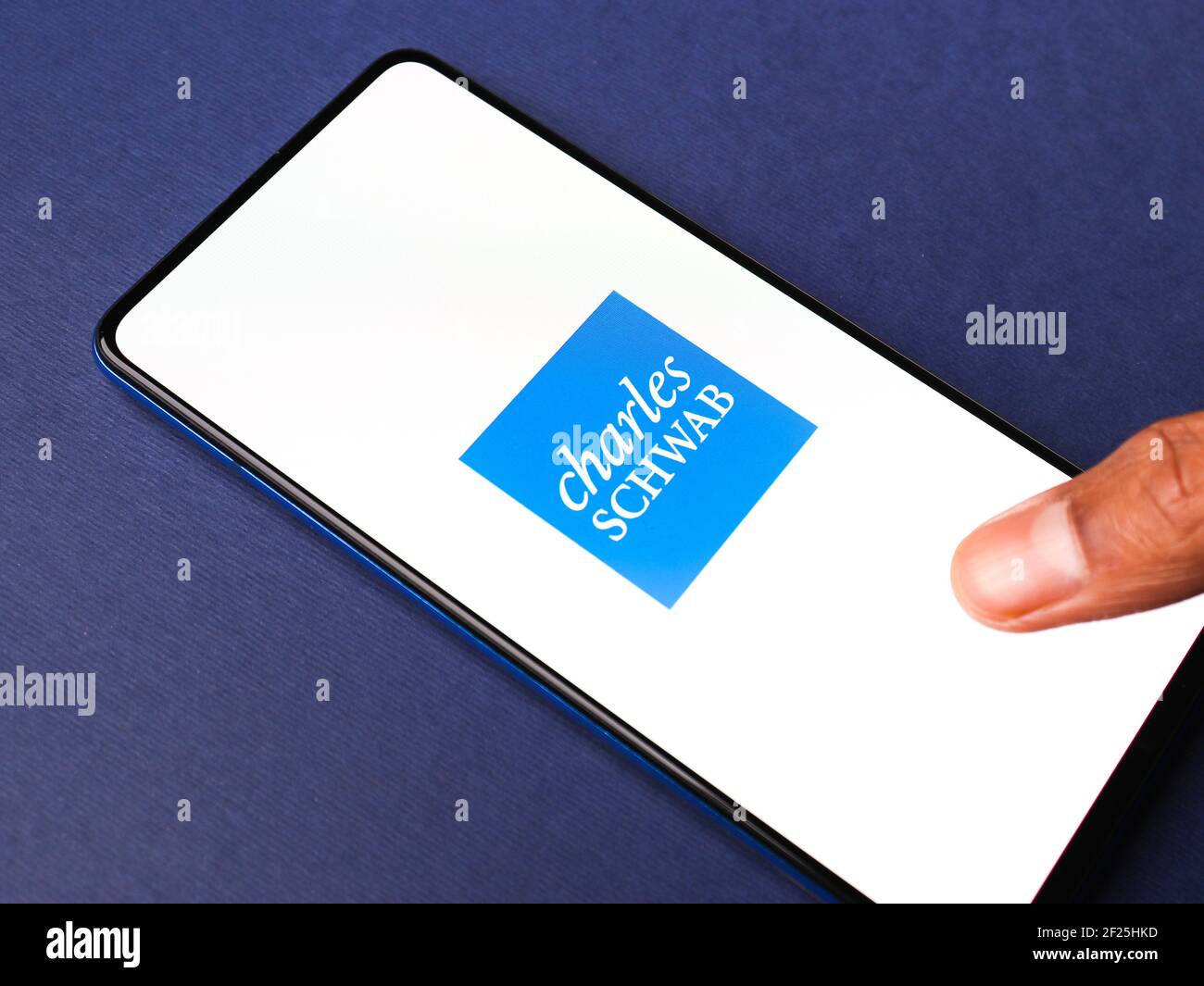 Assam India March 10 2021 Charles Schwab Logo On Phone Screen Stock Image Stock Photo Alamy